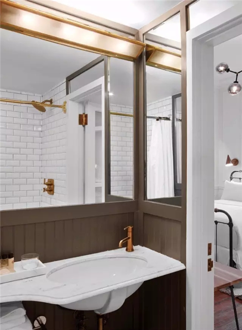 盡管是美國羅德島州的首府,小城普羅維登斯卻往往因為布朗大學、羅德島設計學院等著名學府而受到關注。由Ash NYC事務所操刀設計的Dean酒店就是誕生在這個枝繁葉茂的城市之中,充滿美國舊式學院風,迅速成為人們頻繁駐足光顧的時髦酒店新寵。但有意思的是,酒店建筑的歷史卻一點也不學院。它原本是一棟建于1912年的教會房屋,后被改造成一家脫衣舞俱樂部,有過很長一段燈紅酒綠的時光。這些歷史痕跡現在仍然能夠從大廳里的馬克地板、走廊上的霓虹燈牌看出來,都是設計團隊的刻意保留。房間的設計上,Ash NYC從極富個性的歐洲精品酒店那里獲取靈感。潔白的墻面、利落的線條,顯得冷靜與節制。空間規劃受湖邊營地和單間校舍的啟發,混合搭配了Hudson Bay毛毯、手工定制家具和簡斂的肖像油畫,即便是面積最小的上下鋪客房,也搭配了家具設計大師Jean Prouvé的桌椅。