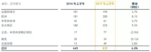 新聞來源:宏輝智通 發(fā)布日期:2017-08-07 瀏覽次數(shù):37042017年上半年合并收入達9.22億歐元,同比增長8.3%,報告增長33.5%。EBIT報告增長68.0%,同比增長33.9%。