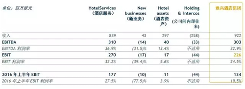 HotelServices的EBIT利潤率也大幅增長,較2016年上半年的27.5%增長4.7%,達到32.2%。HotelServices能取得這樣的成就,主要是因為業(yè)績可觀,來自FRHI酒店的協(xié)同工作迅速推進,并且上半年數(shù)字費用較低。