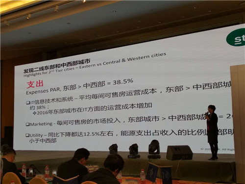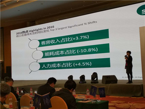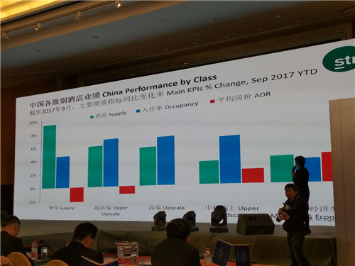 會上,STR中國區經理劉博,通過來自于中國4700家酒店的經營數據,為在場嘉賓分享了“中國酒店業績表現回顧及展望”。