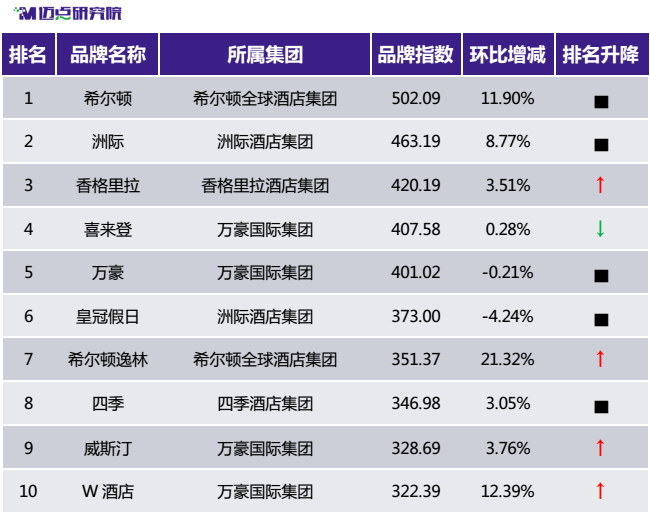 1.國際高端酒店品牌環比升降TOP5