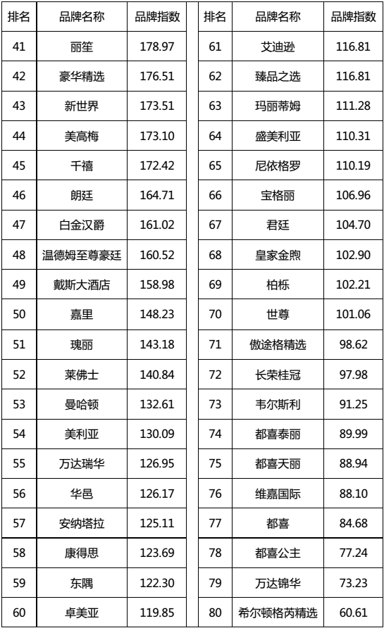附:2017年11月國際高端酒店品牌指數完整榜單
