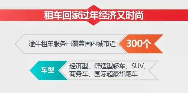 春節主題總繞不開“團圓”二字,從今年春節途牛大交通客群來看,不論是返鄉還是旅游,均以2-5人的家庭為主。對于家庭客群,租車出行靈活、舒適,并且春節期間還可省下高速通行費,因而租車成為越來越用戶的選擇。