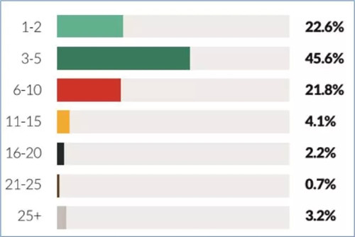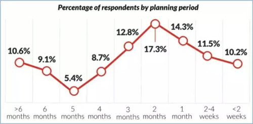 從過去連續(xù)三年的調(diào)查報(bào)告中可以看出,提前2個(gè)月預(yù)訂的人數(shù)占比最高,而幾乎三分之二的消費(fèi)者會提前至多三個(gè)月來預(yù)訂住宿。然而,還有超過四分之一的受訪者表示他們會提前至少5個(gè)月來完成住宿預(yù)訂。