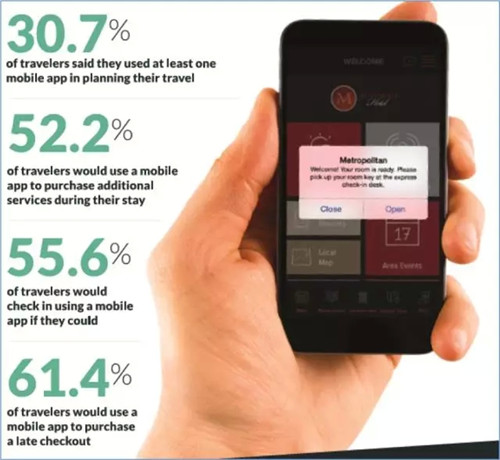 移動應(yīng)用為酒店提供了增加收益的巨大機(jī)會。在此之前,酒店從未有過與客人關(guān)于住宿地如此有效的溝通機(jī)會和能力。旅客渴望更多的便利性,比如利用移動程序來辦理入住手續(xù)。另外,對于酒店來說一個(gè)更大的機(jī)會就是許多消費(fèi)者愿意花更多的錢來獲得一些附加值,比如客房升級和延遲退房等等。所以,酒店現(xiàn)在是時(shí)候投資于移動應(yīng)用,并制定相配套的營銷策略,提高客戶滿意度,從而最終實(shí)現(xiàn)收入的增加。
