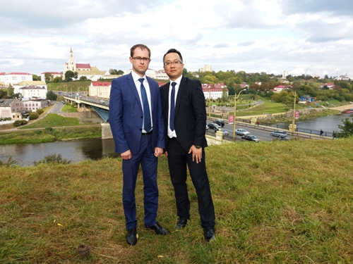 格羅德諾副市長安德烈向東呈酒店集團副總裁趙俊濤推介項目時合影