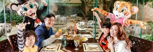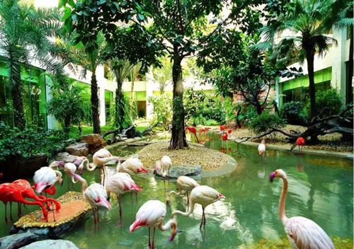 除去周邊豐富的游樂設施,酒店擁有全中國唯一放養白虎及火烈鳥的中庭花園,一家人早餐時能與這些珍稀物種隔窗相望想必也是一種難忘的奇妙體驗。酒店房間內同樣提供兒童拖鞋和兒童洗漱用品,細節處理可謂用心。