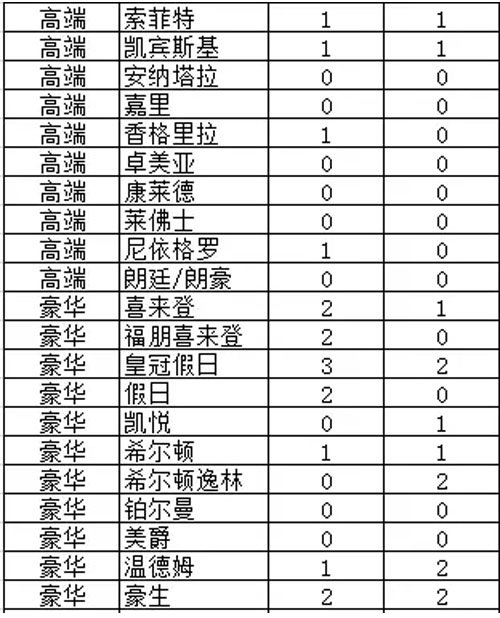 3、相同品牌的酒店,在不同地理位置也有不同的品質水準,在此情況下數量多的占優。