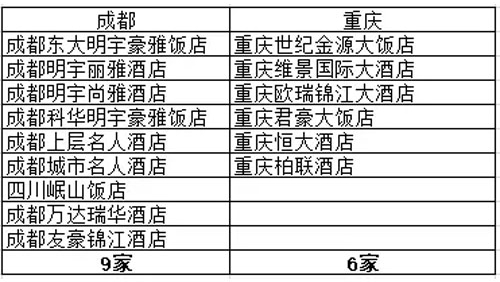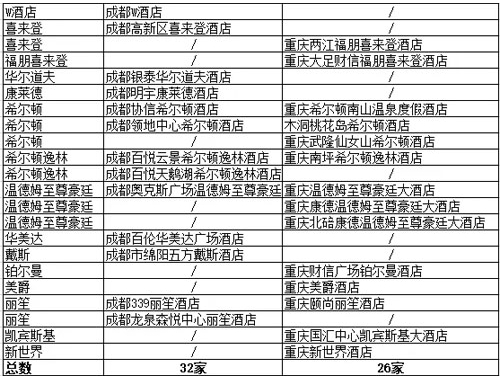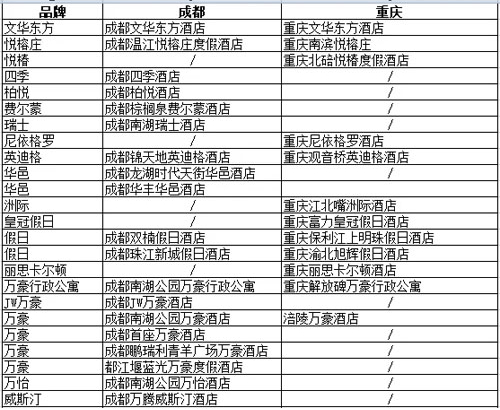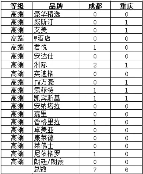 通過以上已經開業及即將開業酒店數量的匯總,我們就可以知道成都和重慶還缺什么品牌,如果有業主想要開新酒店,可以考慮引進新品牌合作,給市場帶來不一樣的新鮮感。