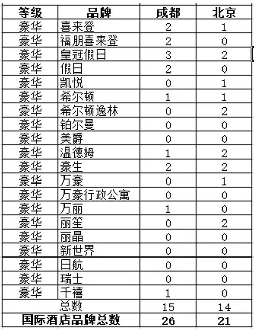 1、高端酒店數量參考攜程、去哪兒網的標準,選擇五星/豪華級別酒店。