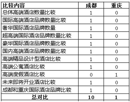 綜上,成都VS重慶的高端酒店哪個城市強的問題,基本有了答案。成都在大多方面要領先于重慶。