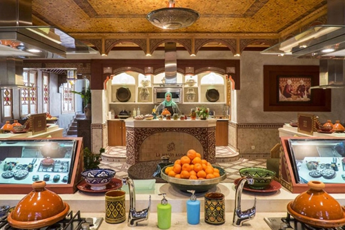 這是馬拉喀什麥地那的第一家利雅德酒店,2001 年開(kāi)始開(kāi)設(shè)烹飪班,他們是整個(gè)王國(guó)里第一家開(kāi)設(shè)烹飪課程的酒店。這家酒店以其細(xì)膩醇厚的辣味燉菜,帕斯蒂亞餡餅和粗麥粉聞名。這家酒店的食物非常棒,也已經(jīng)出版了兩本烹飪書(shū)。酒店老板在老城區(qū)外的有機(jī)花園配有高科技設(shè)備。酒店的 Dadas(傳統(tǒng)摩洛哥風(fēng)味菜式女主廚)教授半天的烹飪課程,她們的烹飪秘訣都是從自己的祖母那里學(xué)來(lái)的。16 個(gè)工作臺(tái)上每一個(gè)都配有一個(gè)顯示器,所以客人可以看清主廚手上動(dòng)作的特寫(xiě),他們也學(xué)著準(zhǔn)備自己的午飯。幾個(gè)月前,沿著酒店所在的大街的不遠(yuǎn)處,他們開(kāi)了另一家烹飪工作室,專門(mén)開(kāi)設(shè)一小時(shí)的燉菜快速烹飪課程。