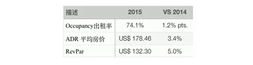 從整體上來(lái)說(shuō),2015年萬(wàn)豪自營(yíng)酒店的出租率為74.1%,較2014年上升了1.2個(gè)百分點(diǎn)。平均房?jī)r(jià)也同比上升了3.4%達(dá)到了178.46美金。從房?jī)r(jià)上也充分反映了其高端酒店的定位。