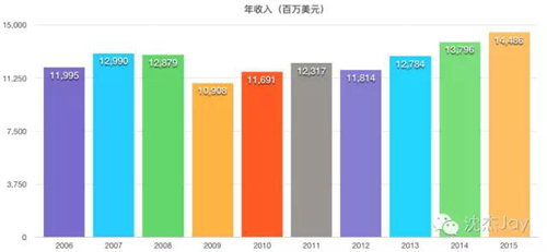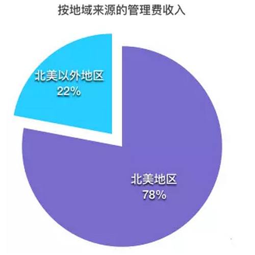 從地域分布來(lái)看,2015年來(lái)自北美地區(qū)的收入占了總收入的78%。