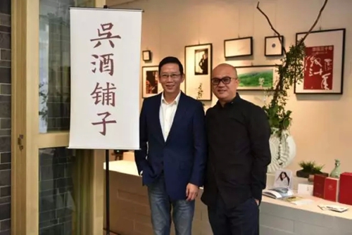酒店進(jìn)門就有吳酒(吳曉波電商生意的產(chǎn)品)精巧地擺放了一柜臺。柜臺后,掛著吳曉波的照片、名言以及書作封面。亞朵宣稱,這是「行業(yè)打開通往社群經(jīng)濟(jì)商業(yè)模式的新入口」,與吳曉波合作,共享社群價值。