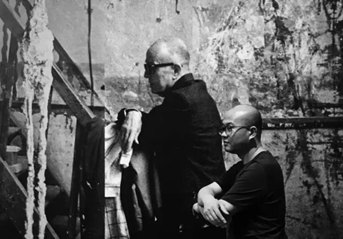 他圓臉,光頭,黑襯衫黑皮鞋,與瓜子臉且頭發茂密的吳曉波站在一起,卻不顯違和。