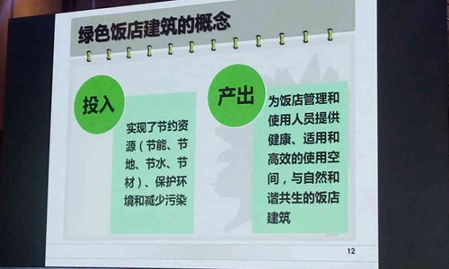 我們提出的一星二星三星綠色建筑,與星級酒店不是一回事,綠色建筑評級,三星等級最高。我們從2008年開始評綠色建筑,目前已有四千多個項目拿到綠色建筑標識。在進行評級的時候發現,有些標準可能已經過時,為了與時俱進,我們和中國飯店協會修訂了綠色酒店評價標準,從12月1號開始實施。