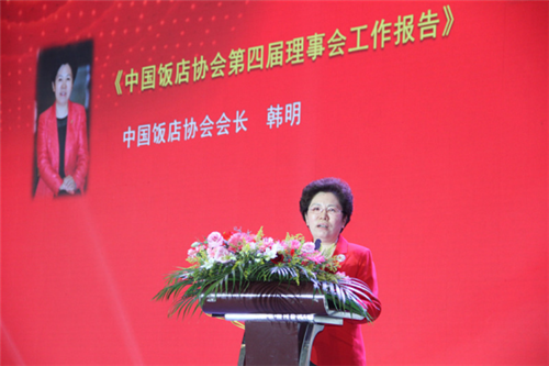 韓明會長做《中國飯店協會第四屆理事會工作報告》