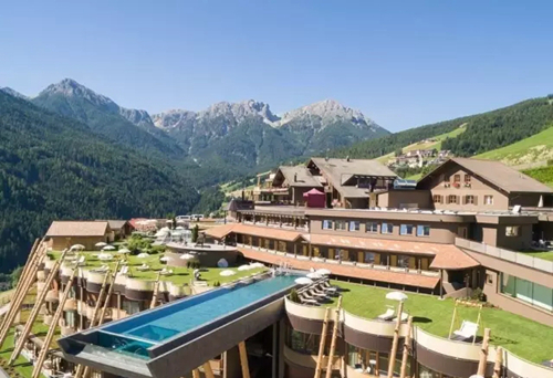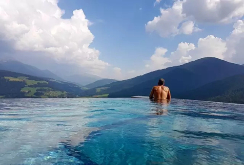 近日,一間專門提供給滑雪者與健行者的酒店Hotel Hubertus進(jìn)行改造,在其頂層建了一個(gè)非常考驗(yàn)勇氣的泳池。