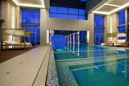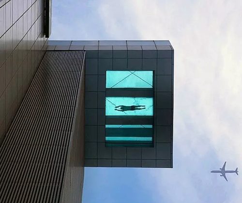 這么炫的設(shè)計(jì),在國內(nèi)也有哦!中國第一座天幕室內(nèi)泳池,位于浦東綠地假日酒店24層。泳池總長30米,寬6米,深1.5米,由內(nèi)部延伸出建筑外部,懸掛在高空之中。