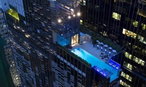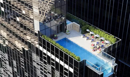 國際建筑事務(wù)所Aedas在香港設(shè)計(jì)了英迪格(Indigo)酒店,其特色是在酒店頂樓(29層)的邊緣上懸浮著一個(gè)游泳池。