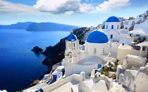 所有套房都有面朝大海的露臺,可以盡情欣賞湛藍(lán)的地中海、全景火山、和圣托里尼獨(dú)有的峭壁上的純白建筑。