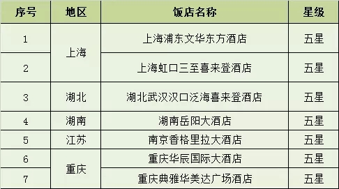 相較之下,2016年酒店掛牌上星數(shù)量則寥寥無(wú)幾,輝視網(wǎng)從中國(guó)旅游飯店業(yè)協(xié)會(huì)官網(wǎng)獲悉,截止目前,2016年全國(guó)掛牌五星級(jí)酒店僅7家,遍布于上海、湖北、湖南、江蘇、重慶等地,具體名單如下: