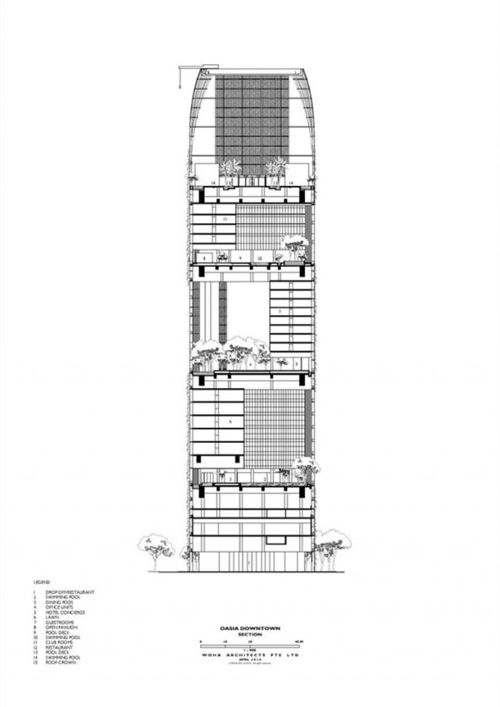 WOHA 最近的一個(gè)完工項(xiàng)目是新加坡遠(yuǎn)東酒店集團(tuán)旗下的 Oasia Hotel,它坐落于新加坡的中央商務(wù)區(qū),高度為 190.15 米。Oasia 提供標(biāo)準(zhǔn)間、套房和會(huì)所,住宿一晚的價(jià)格在 800-2000 人民幣左右。