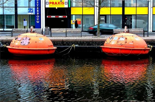 其實,這個奇怪的設備最初在1972年生產出來是為海上石油鉆井平臺配備的幸存者艙,內部的直徑也只有4.25米,除了基礎設施的配備,雖然內部會稍微修飾一下,但想來居住的體驗也不會非常愉快。關于安全性,艙門外面有外部鎖,所以盡管沿街而居住,也不用太擔心自身及物品的安全。荷蘭海牙的這個膠囊旅館作為短暫過夜的地方,偶爾通過小小的窗戶看下運河的風景還是非常美妙的。