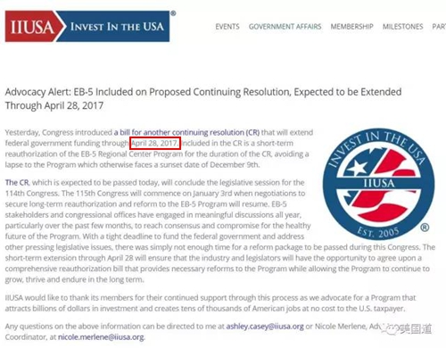 而就在美國時間12月7日,IIUSA的官方網(wǎng)站上已發(fā)布通告,正式確認EB-5現(xiàn)行法案已經(jīng)包括進了持續(xù)決議案(CR-Continuing Resolution)的順風(fēng)車,通過周五兩院的投票后,就將延期至2017年4月28日。新的法案可能會將最高投資要求從50萬美元提高到80萬美元(高失業(yè)率地區(qū)),從100萬美元提高到120萬美元(低失業(yè)率地區(qū))。